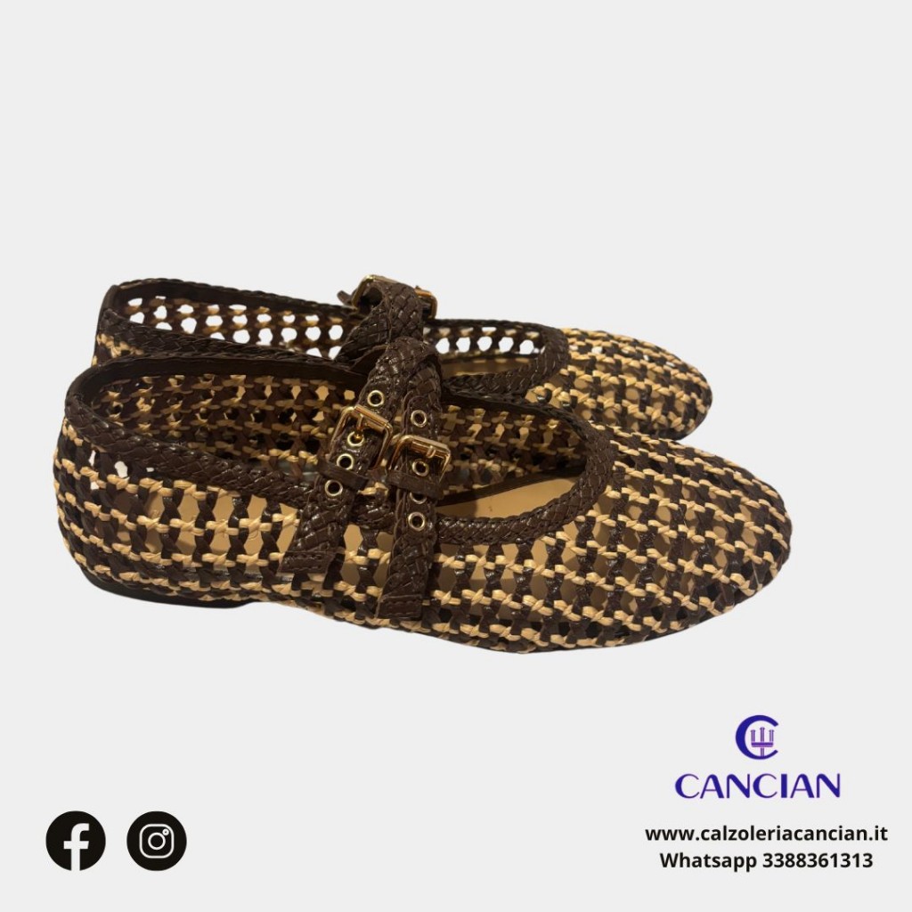 BALLERINA CINTURINO PELLE INTRECCIATA TRAFORATA.