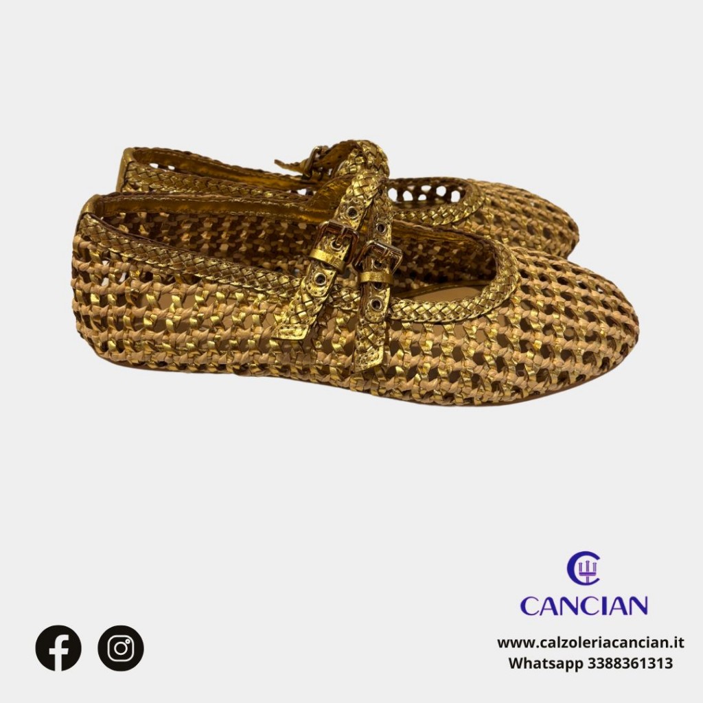 BALLERINA CINTURINO PELLE INTRECCIATA TRAFORATA.