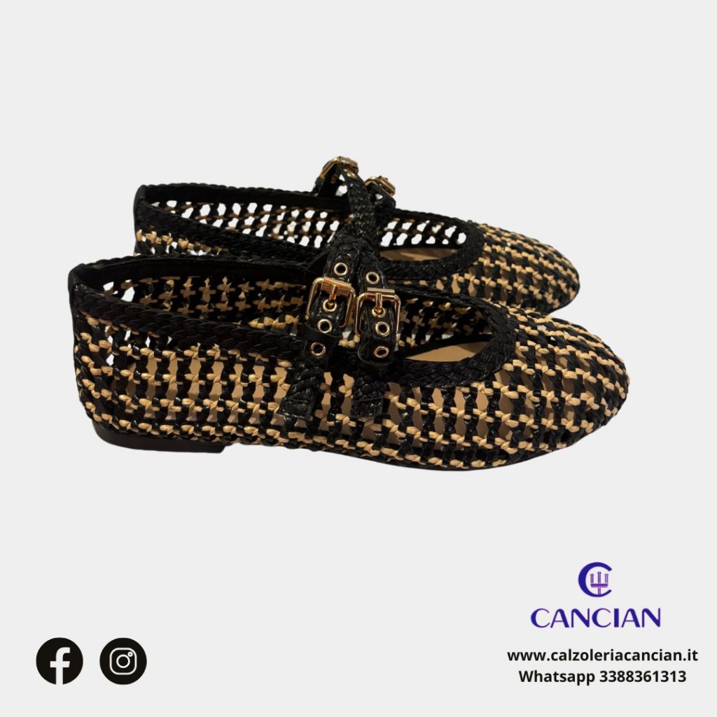 BALLERINA CINTURINO PELLE INTRECCIATA TRAFORATA.