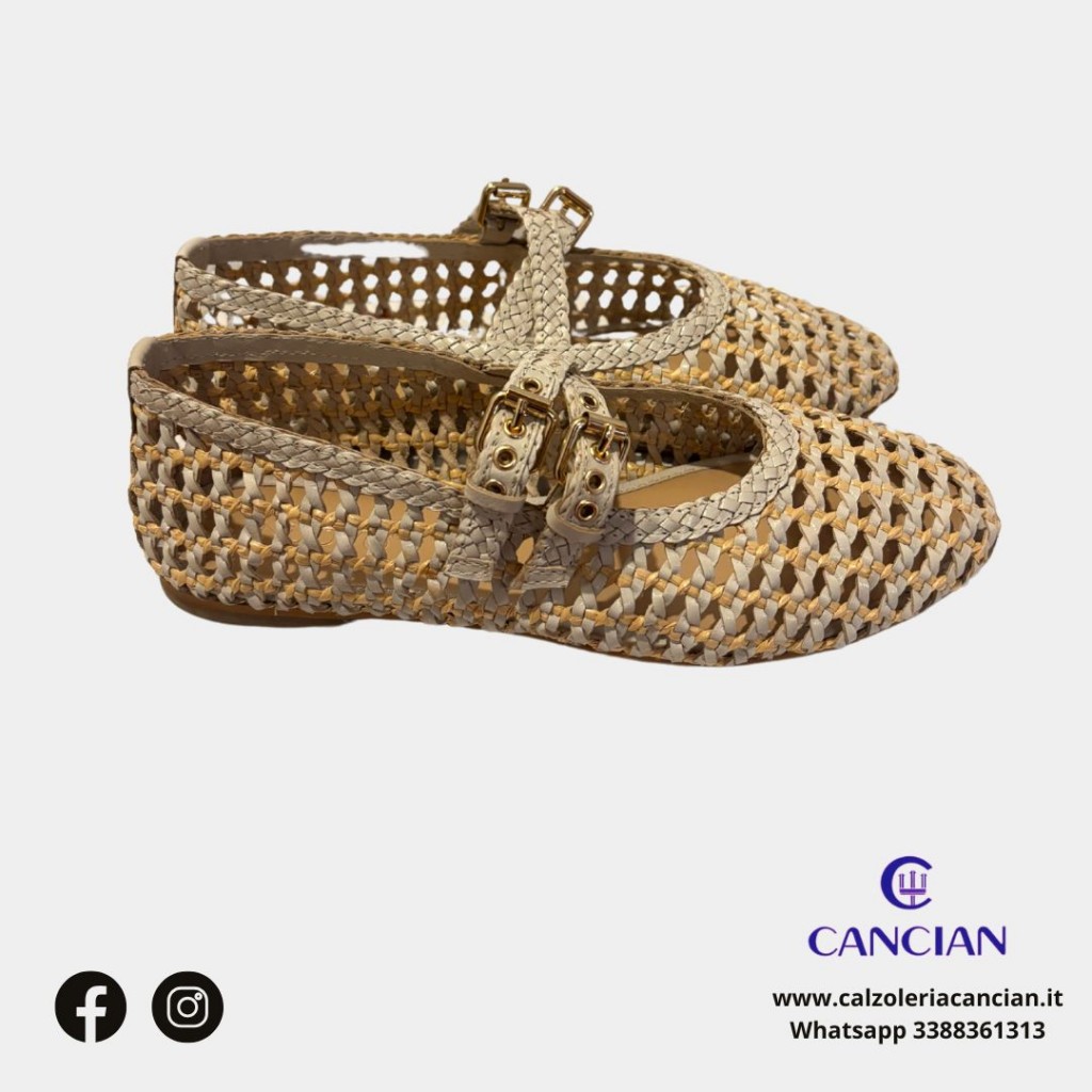 BALLERINA CINTURINO PELLE INTRECCIATA TRAFORATA.