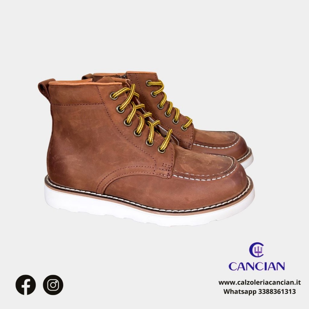SCARPONCINO LACCIO E CERNIERA NABUCK FONDO GOMMA CUCITURA BIANCA.