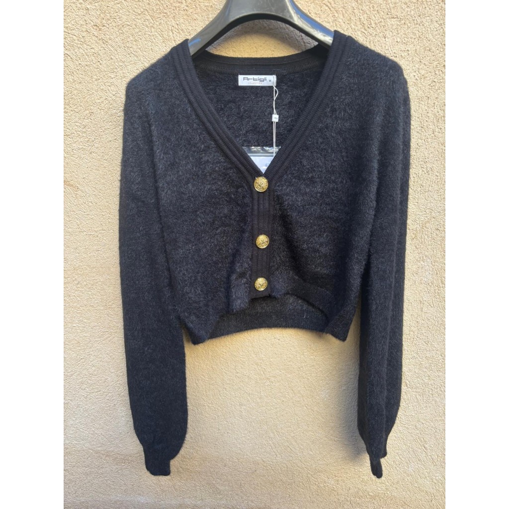 CARDIGAN CORTO CON PELO BOTTONI ORO.