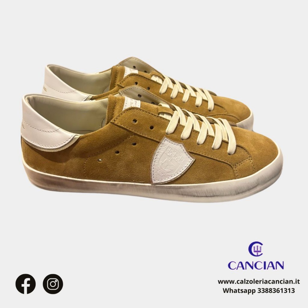 SPORTIVA CAMOSCIO BEIGE, TALLONE E SCUDETTO BIANCO, LACCIO BIANCO.