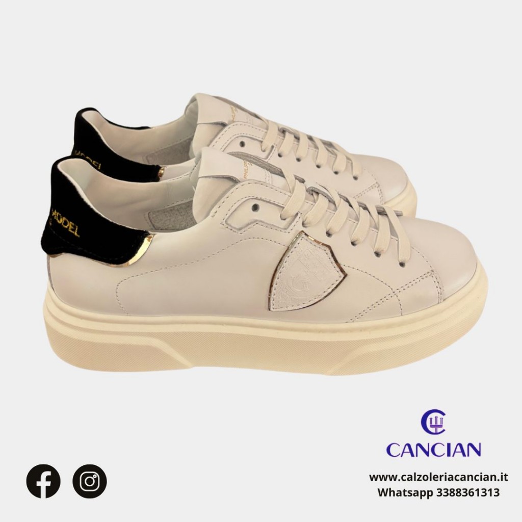 SPORTIVA PELLE BIANCA, TALLONE VELLUTO NERO, PROFILI ORO, FONDO ALTO.